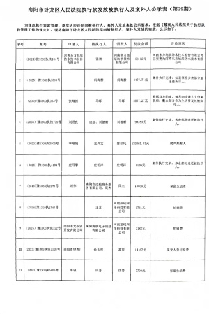 南阳市卧龙区人民法院执行款发放被执行人及案外人公示表(第29期)