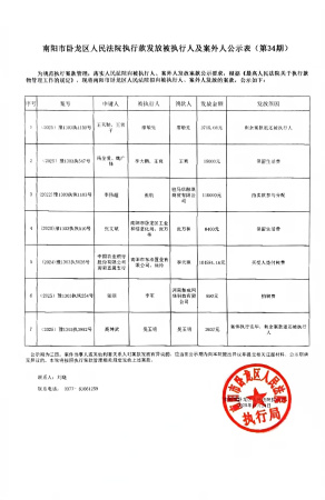 南阳市卧龙区人民法院执行款发放被执行人及案外人公示表(第34期)