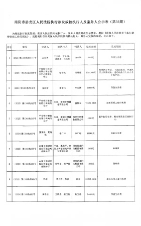 南阳市卧龙区人民法院执行款发放被执行人及案外人公示表(第35期)