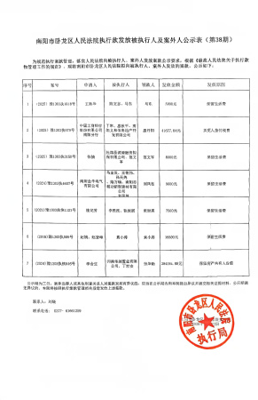 南阳市卧龙区人民法院执行款发放被执行人及案外人公示表(第38期)