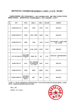 南阳市卧龙区人民法院执行款发放被执行人及案外人公示表(第40期)