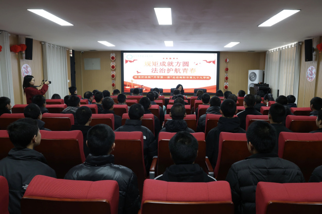 为深入推进特殊教育学校的法治教育,引导罪错未成年人树立正确的法律观念、重塑人生方向,3月10日上午,南阳市卧龙区人民法院少年审判团队法官王慧走进南阳市第九十九学校,以“规矩成就方圆 法治护航青春”为主题,为48名正处于人生转折点的学生带来一堂有温度、有指引的“开学第一课”。活动伊始,王慧以互动提问拉近距离,温柔开启对话:“同学们,我们一起想一想,哪些小事看似平常,却已经触碰了法律底线?多少岁开始,我们要为自己的行为承担法律责任?曾经的过错,能不能成为重新出发的起点?”同学们纷纷认真思考并积极举手回答,干警也及时送上含有法院元素的笔记本。