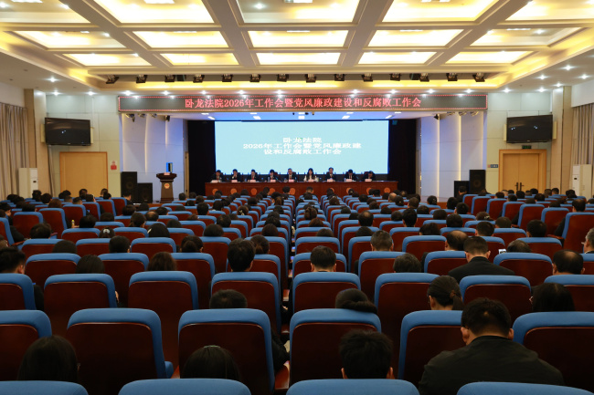 陈永江在总结讲话中充分肯定了卧龙区法院2025年各项工作取得的成效,深入剖析了当前工作面临的困难挑战与短板不足,并对2026年整体工作作出了全面部署。会议指出,2026年是“十五五”规划开局之年,也是法院工作转型升级的关键期。全体干警要坚持以习近平新时代中国特色社会主义思想为指导,全面学习党的二十大和二十届历次全会精神,深入践行习近平法治思想,认真贯彻落实中央、省委、市委、区委和上级法院各项决策部署,坚持服务大局、司法为民、公正司法,加快推进审判理念、机制、体系、管理现代化,奋力开创卧龙区法院工作新局面,为卧龙区“十五五”规划开好局、起好步提供有力的司法服务和保障。会议强调:一是要铸魂领航,固本提升,以政治建设统领方向全局。必须始终把政治建设放在首位,不断提升政治站位、深化理论武装、促进党建业务融合、严守安全风险底线,为全年工作高质量开展筑牢政治根基。二是要聚焦中心,护航大局,以精准服务赋能高质量发展。立足职能职责,准确把握司法服务高质量发展的切入点和着力点,主动融入,努力实现“营商环境提质进位、法治保障精准有力、风险防控扎实有效、基层治理完善优化”,为辖区经济社会发展提供坚实司法支撑。三是要靠前服务,提档转变,以暖心服务厚植民生底色。牢固树立“如我在诉”理念,深刻践行司法为民根本宗旨,着力实现“诉讼服务提质、信访化解提效、法庭建设提标、群众满意度提升”,以实实在在的司法成效践行初心使命、回应群众期盼,努力提升群众司法获得感。四是要提质增效,进位跃升,以闭环管理实现审执突破。深刻践行大审管理念,统筹审判质量、效率、效果实现有机统一,促进案件质效均衡提升。紧盯薄弱环节、强化动态管控,压实各环节办案责任,全力推动审执工作整体进位,切实以高质效的审执活动满足群众的司法需求。五是要严管厚爱,砥砺奋进,以过硬队伍赋能工作跃升。深刻把握新时代法院队伍建设根本要求,着力实现“队伍素能全面提升、纪律作风严实规范、干事士气昂扬高涨、担当作为奋勇争先”的队伍建设目标,锻造一支政治坚定、业务精湛、作风优良的司法铁军,为各项工作持续向上突破提供坚实人才支撑。